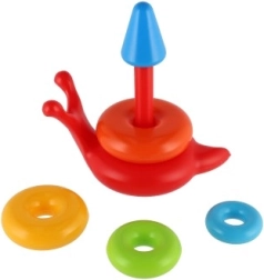 Igračka ima bazu u obliku puža s predivnim ušima i osmijehom, koja donosi radost i razigranost svakodnevnom igranju.