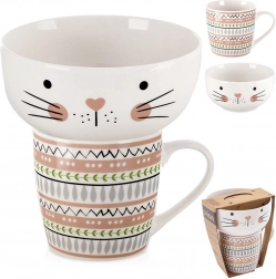 Uljepšajte doručak stilskim posluživanjem. Ovaj porculanski set s preslatkim mačjim licem povezuje šalicu i zdjelicu u razigranu cjelinu – razveselit će i djecu i odrasle. Kvalitetan porculan s glatkom, sjajnom glazurom ugodan je na dodir, izdržljiv pri svakodnevnoj upotrebi i lako se održava.