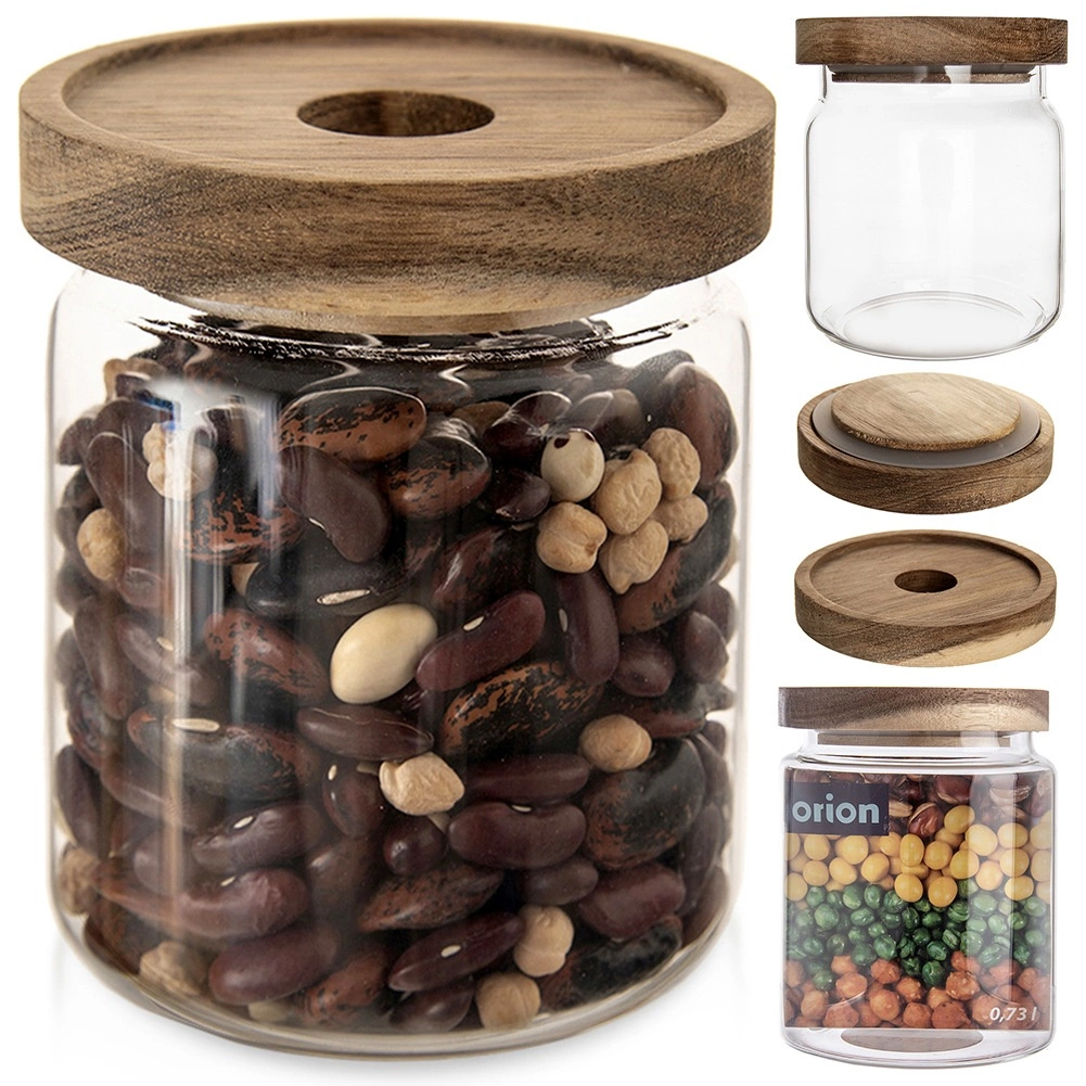 Praktična staklena posuda zapremnine 730 ml s akacijevim poklopcem i silikonskom brtvom čuva vašu hranu dulje svježom i mirisnom. Izdržljivo borosilikatno staklo idealno je za pohranu kave, tjestenine, orašastih plodova ili mueslija, a prozirne stijenke omogućuju laku kontrolu sadržaja.