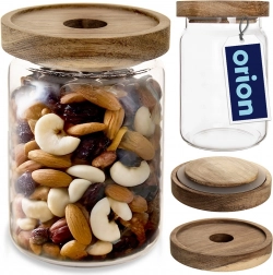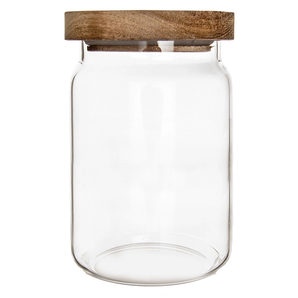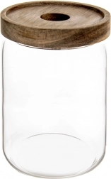 Praktična staklena posuda zapremnine 970 ml za pregledno i higijensko skladištenje suhih namirnica. Izrađena je od izdržljivog borosilikatnog stakla i ima drveni poklopac sa silikonskom brtvom za pouzdanu zrakonepropusnost i dužu svježinu te aromu sastojaka. Prikladna za perilicu posuđa (bez poklopca) i idealna za kavu, orašaste plodove, tjesteninu, muesli ili sušeno voće.