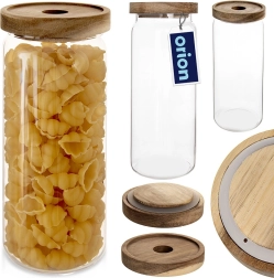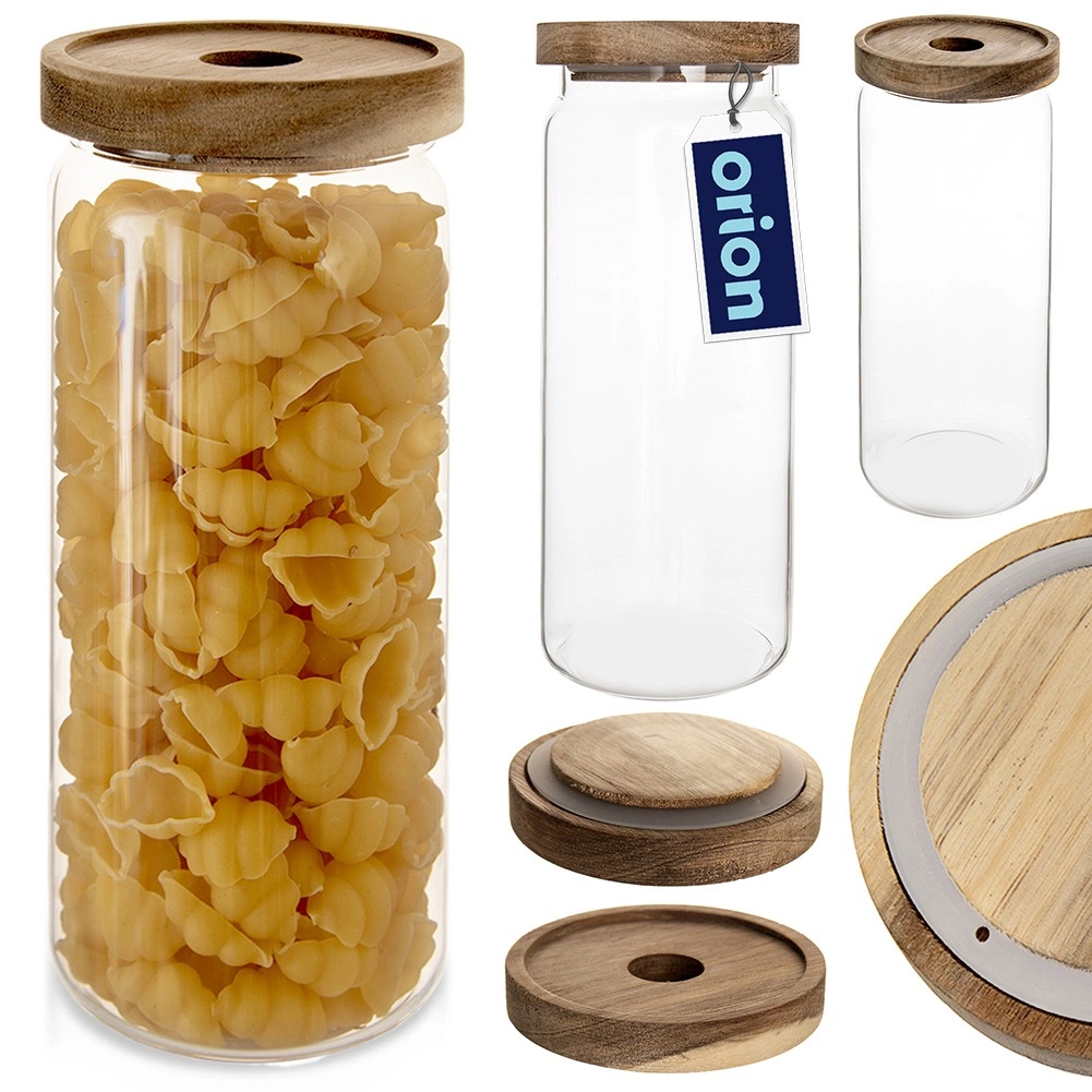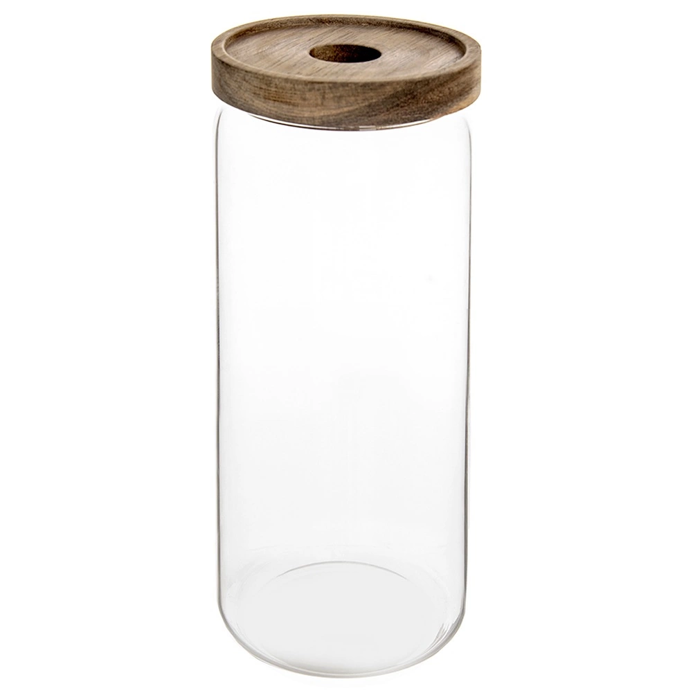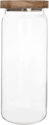 Praktična staklena posuda zapremine 1,6 l s drvenim poklopcem i silikonskom brtvom čuva vaše namirnice dulje svježima i mirisnima. Izdržljivo borosilikatno staklo idealno je za svakodnevnu upotrebu, prozirne stijenke omogućuju trenutačan uvid u sadržaj, a elegantan izgled uljepšat će svaku kuhinju. Posuda je pogodna za kavu, tjesteninu, orašaste plodove, muesli i druge suhe sastojke, a stakleni dio može se prati u perilici posuđa.