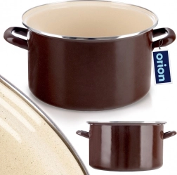 Veliki emajlirani lonac zapremine 10 l i promjera 30 cm idealan je za kuhanje i pirjanje većih porcija juha, umaka i glavnih jela. Izrađen od kvalitetnog emajliranog čelika s kremastom unutrašnjošću i smeđom vanjštinom, kompatibilan sa svim vrstama štednjaka uključujući indukciju te za pećnicu. Ima čvrste ergonomske ručke i može se prati u perilici posuđa.