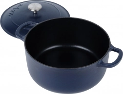 Univerzalan lijevani lonac s poklopcem zapremnine 5,2 l za svakodnevno kuhanje, pirjanje i pečenje. Zahvaljujući ravnomjernoj raspodjeli topline, dugoj akumulaciji topline i otpornosti do 250 °C savladava juhe, gulaše i pečenja na štednjaku, u pećnici i na roštilju. Unutarnja emajlirana površina olakšava kuhanje i jednostavno čišćenje, a robusna inox ručka na poklopcu i široke bočne ručke osiguravaju sigurnu manipulaciju.