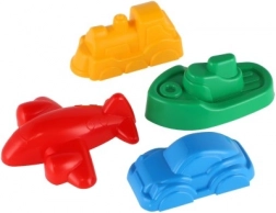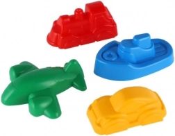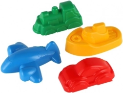 Ovaj set od 4 kalupa za pijesak u obliku vlaka, broda, aviona i autića pretvara svaki pješčanik i plažu u svijet pun mašte. Zahvaljujući kompaktnim dimenzijama (cca 8–10 cm) djeci dobro leže u ruci i lako se iz njih vade savršeno oblikovani pješčani kolačići.