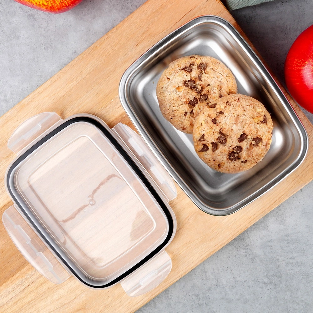 Praktičan i higijenski spremnik za hranu od nehrđajućeg čelika štiti hranu od vlage i zraka, održava je dulje svježom i odličan je za svakodnevnu upotrebu. Zahvaljujući kompaktnim dimenzijama 14,5 × 11,5 × 5,5 cm stane u torbu ili školski ruksak, a zapremnina 500 ml je idealna za salate, priloge ili užine.