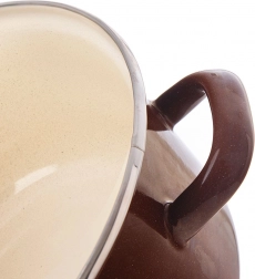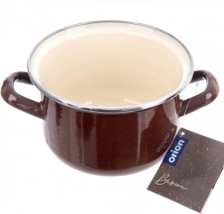Lonac iz serije BROWN spaja bezvremenski izgled s praktičnošću za svaki dan. Smeđi emajlirani čelik sa srebrnim inox rubom i kremastom unutrašnjošću uklapa se u moderne i rustikalne kuhinje. Zahvaljujući zapremini 1,4 l, promjeru 16 cm i visini 10 cm, savršen je za juhe, umake, kaše ili manje porcije priloga.