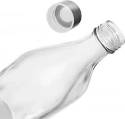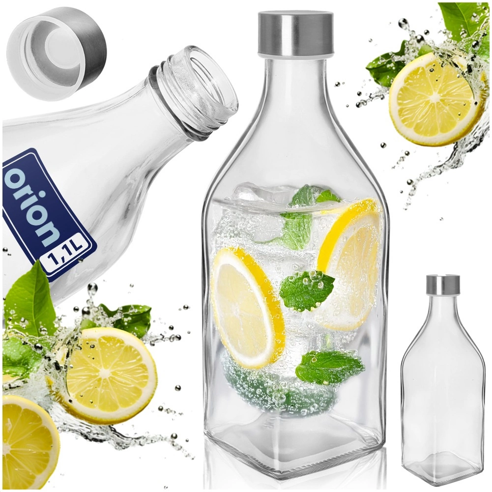 Stilizirana prozirna boca od kvalitetnog stakla savršena je za posluživanje i pohranu napitaka. Metalni čep s navojem i silikonska brtva osiguravaju sigurno zatvaranje bez curenja i dulje čuvaju svježinu napitka. Čiste linije i kvadratna baza jamče stabilnost i ugodno točenje.