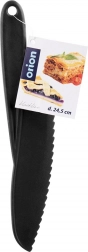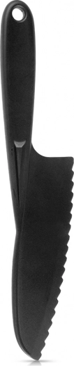 Ovaj nazubljeni nož za torte iz kolekcije BLACKLINE idealan je za rezanje biskvitnih kora, porcioniranje torti i pita. Lagana i izdržljiva plastična konstrukcija u crnoj boji osigurava dugi vijek trajanja i ugodnu svakodnevnu upotrebu.