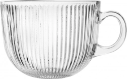 Ova prostrana čaša s ručkom spaja bezvremenski dizajn i praktičnost. Prozirno staklo s vertikalnim rebrima daje elegantan izgled, poboljšava hvat i ističe boje čaja, kave ili limunade. Zahvaljujući zapremnini 500 ml udobno ćete poslužiti latte, rinfuza čaj i biljne napitke.