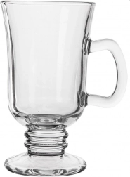 Elegantna čaša za latte zapremnine 250 ml sa stabilnim stalkom i udobnom ručkom idealna je za posluživanje lattea, cappuccina, čaja i kuhanog vina. Izrađena od izdržljivog prozirnog stakla, prikladna za svakodnevnu upotrebu kod kuće i u gastronomiji te se može prati u perilici posuđa.
