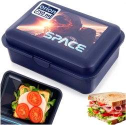 Stilská i izdržljiva kutija za užinu s efektnim svemirskim motivom i natpisom SPACE oduševit će djecu i odrasle. Jednostavna jednokomorna konstrukcija i pravokutni oblik pružaju dovoljno mjesta za sendviče, voće ili druge poslastice. Kutija je lagana, od sigurnih materijala neutralnih prema hrani i zadovoljava europske standarde.