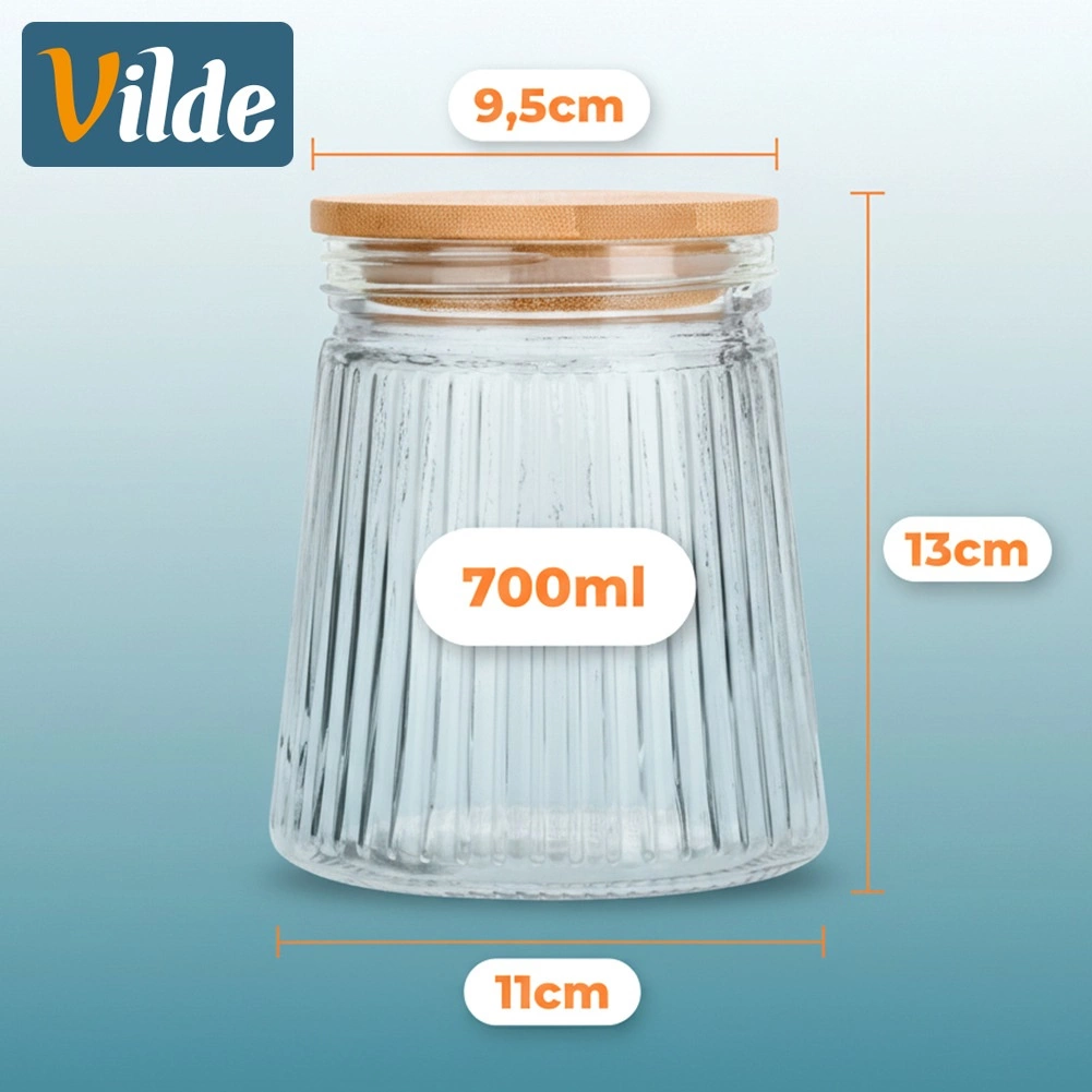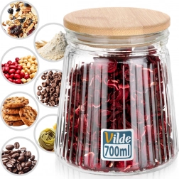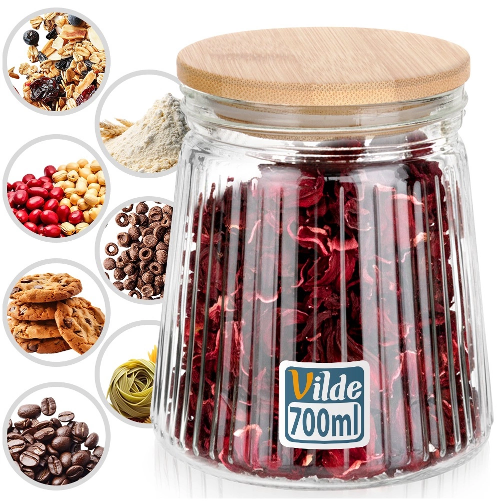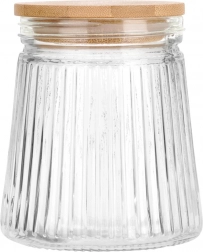 Održavajte red u kuhinji s praktičnom i lijepom posudom od borosilikatnog stakla. Rebrasto, prozirno izvedenje naglašava boje kave, čaja, tjestenine ili orašastih plodova, dok bambuski poklopac sa silikonskim prstenom osigurava pouzdanu nepropusnost i zaštitu od vlage.