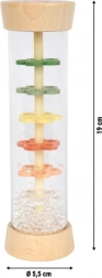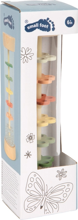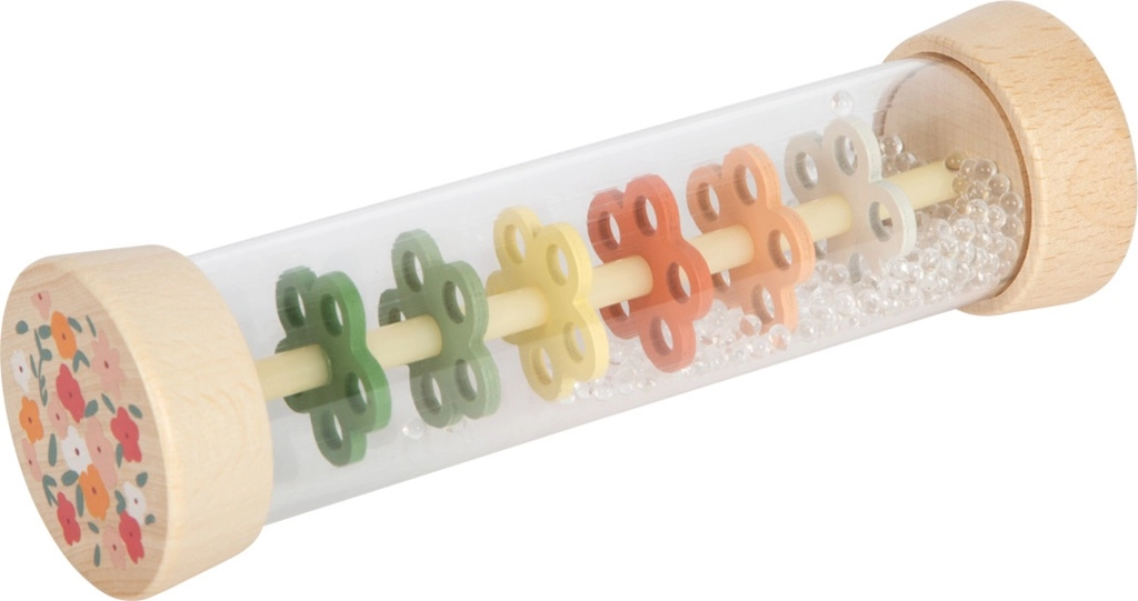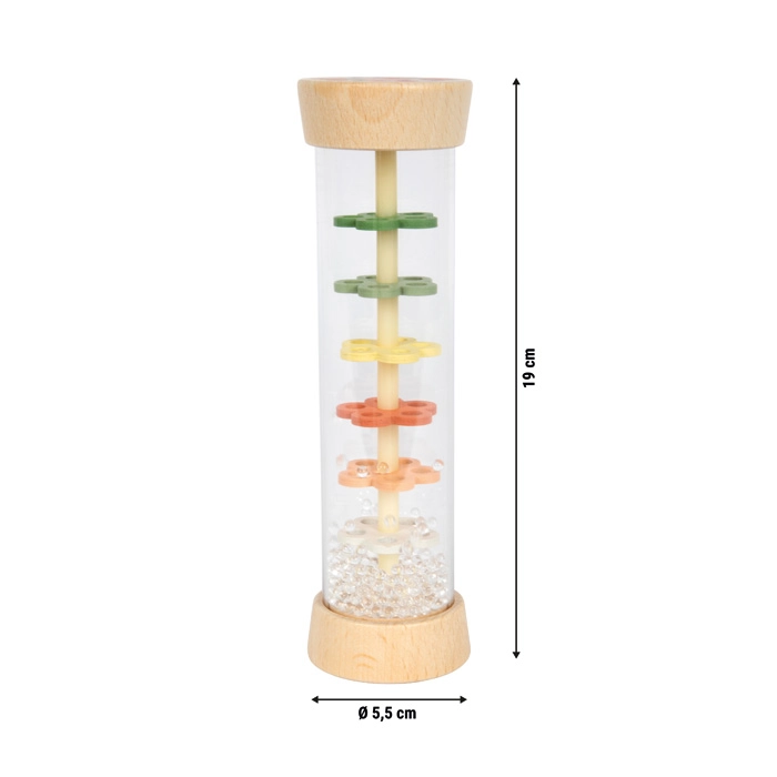 Kišna palica Mali prijatelji donosi djeci čaroliju kapljica izravno u njihove ruke. Sjajne perlice polako se spuštaju kroz šarene cvjetne pločice u prozirnoj cijevi i stvaraju ujednačen, opuštajući zvuk. Idealna za trenutke smirivanja, za prve ritmičke pokušaje i kao šarena zvečka.