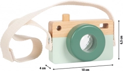 Izrađena je od 100% FSC certificiranog drva s glatkom obradom za sigurno igranje. Na prednjoj strani nalazi se otisnuti sat s pokretnim kazaljkama za razigrano učenje vremena. Igračka prirodno potiče finu motoriku, koordinaciju pokreta, vizualno i slušno opažanje te razvija maštu.