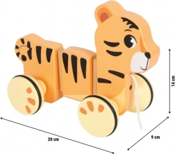 Slatki tigar na povlačenje od small foot izrađen je od 100% FSC® drva i oduševit će male istraživače već od 1. godine. Zahvaljujući tihim kotačićima s gumenim obručem i fleksibilnom trodijelnom tijelu pri povlačenju se glatko njiše, potiče razvoj fine i grube motorike, ravnoteže i prve korake. Prijateljski safari dizajn i čvrsta izrada čine ga idealnim pratiteljem za svakodnevnu igru.