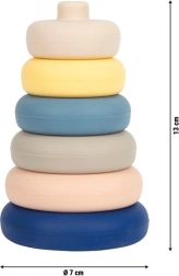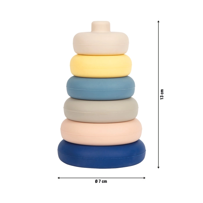 Svestrani silikonski toranj za slaganje za djecu od 1 godine donosi sigurnu, zabavnu i senzornu igru kod kuće, u kadi i na pješčaniku. Šest mekih prstenova od BPA free silikona za prehranu lako se slaže bez središnje šipke, ima svilenkastu površinu i zaobljene rubove za maksimalnu sigurnost. Potiče finu motoriku, oko–ruka koordinaciju i percepciju boja i veličina.