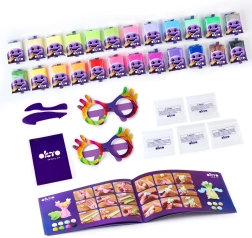 - 24× paketić mase (10 g), slikovni priručnik, modelirajući alati, 5× vrećica s patentnim zatvaračem, 2× papirnate naočale