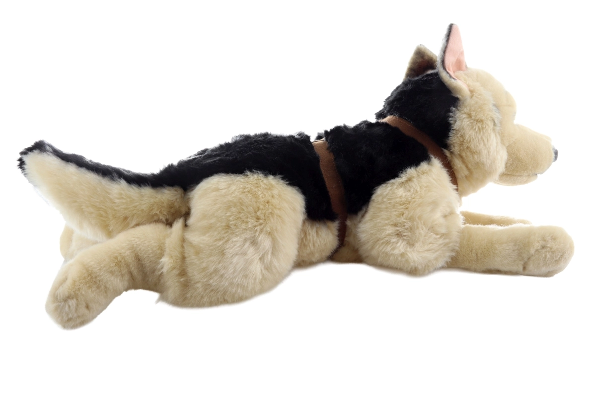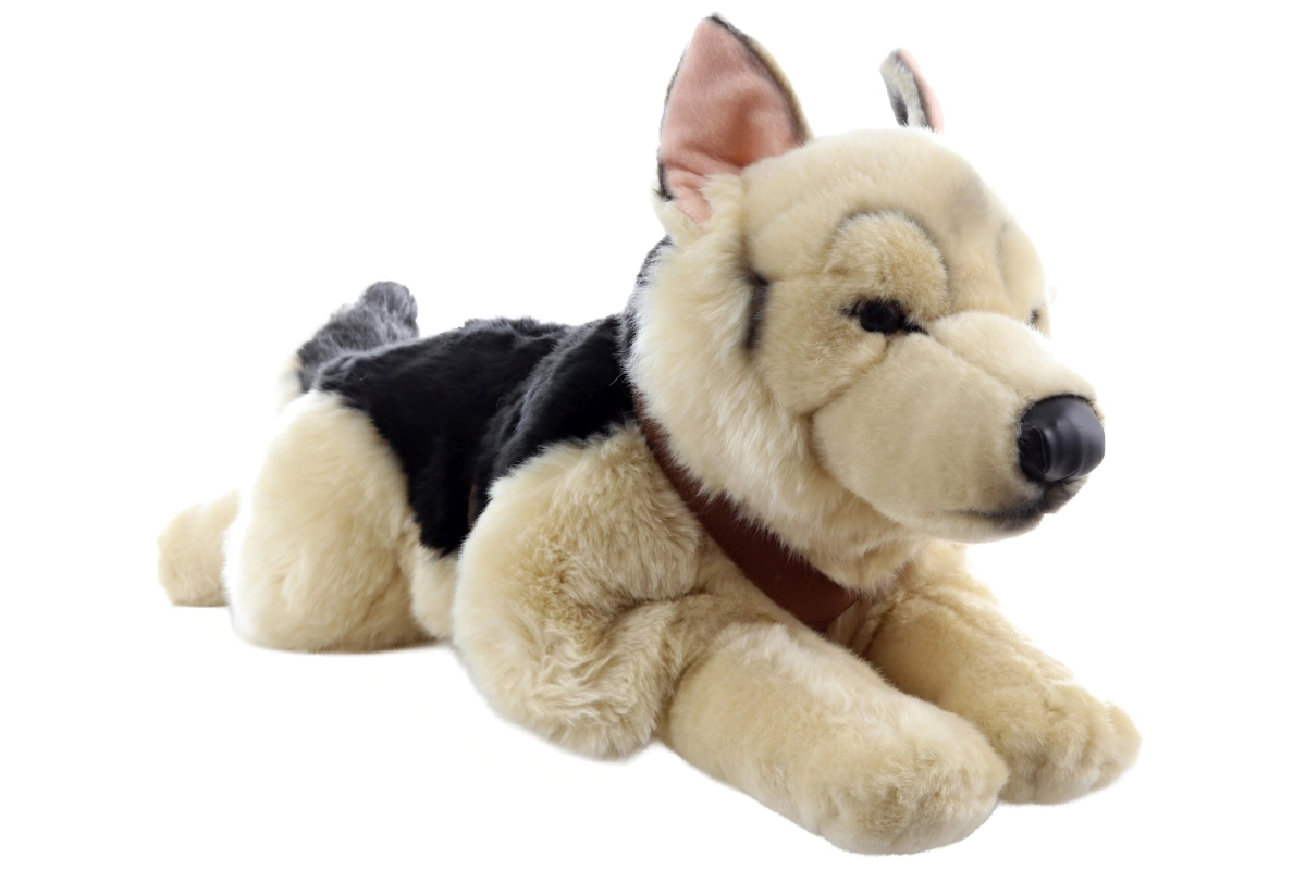 Ovaj elegantni plišani njemački ovčar s ormom izvrstan je pratitelj za svakodnevnu igru i maženje. Njegova realistična izrada sa bogatim bež-crnim krznom i naglašenim ušima djeluje vjerodostojno te oduševljava djecu i odrasle. Zahvaljujući ugodno mekoj površini odlično leži u naručju i pruža utjehu, a ujedno je i dekorativan dodatak dječjoj sobi.