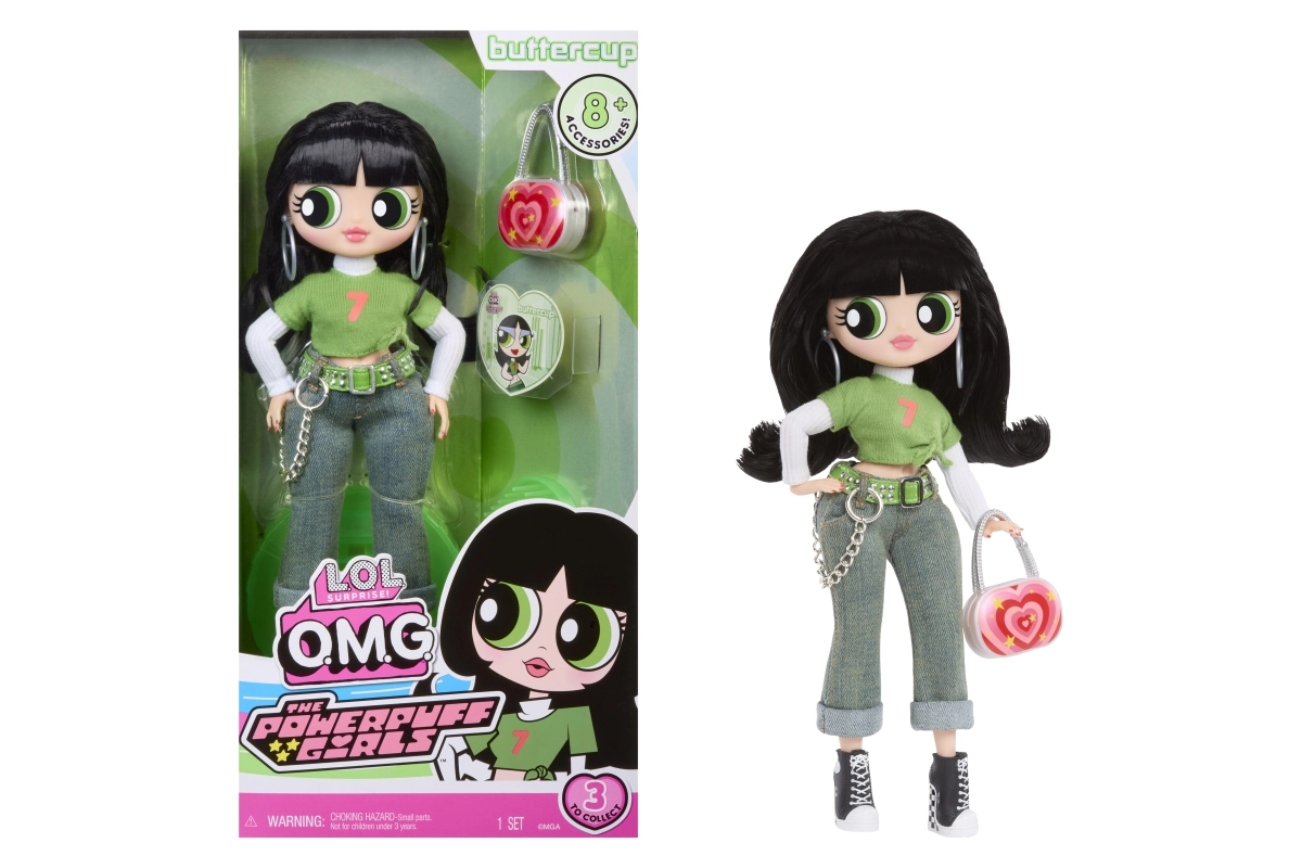 Ikonična Buttercup stiže među L.O.L. OMG Velike seke u svom izražajnom zelenom stilu nadahnutom serijom Moćne djevojčice. Zahvaljujući zglobovima, lutka je izvrsno udobno pokretna i lako je izložiti na priloženom stalčiću. Dugu kosu možeš češljati i uređivati priloženom četkom, dok detaljan outfit s dodacima daje igri novu dimenziju.