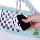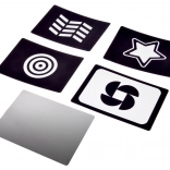 Visok kontrast, raznolike teksture, šuškavi i zvečkavi elementi potiču vid, sluh i dodir. Zrcalce i kartice motiviraju bebu na promatranje i koncentraciju.