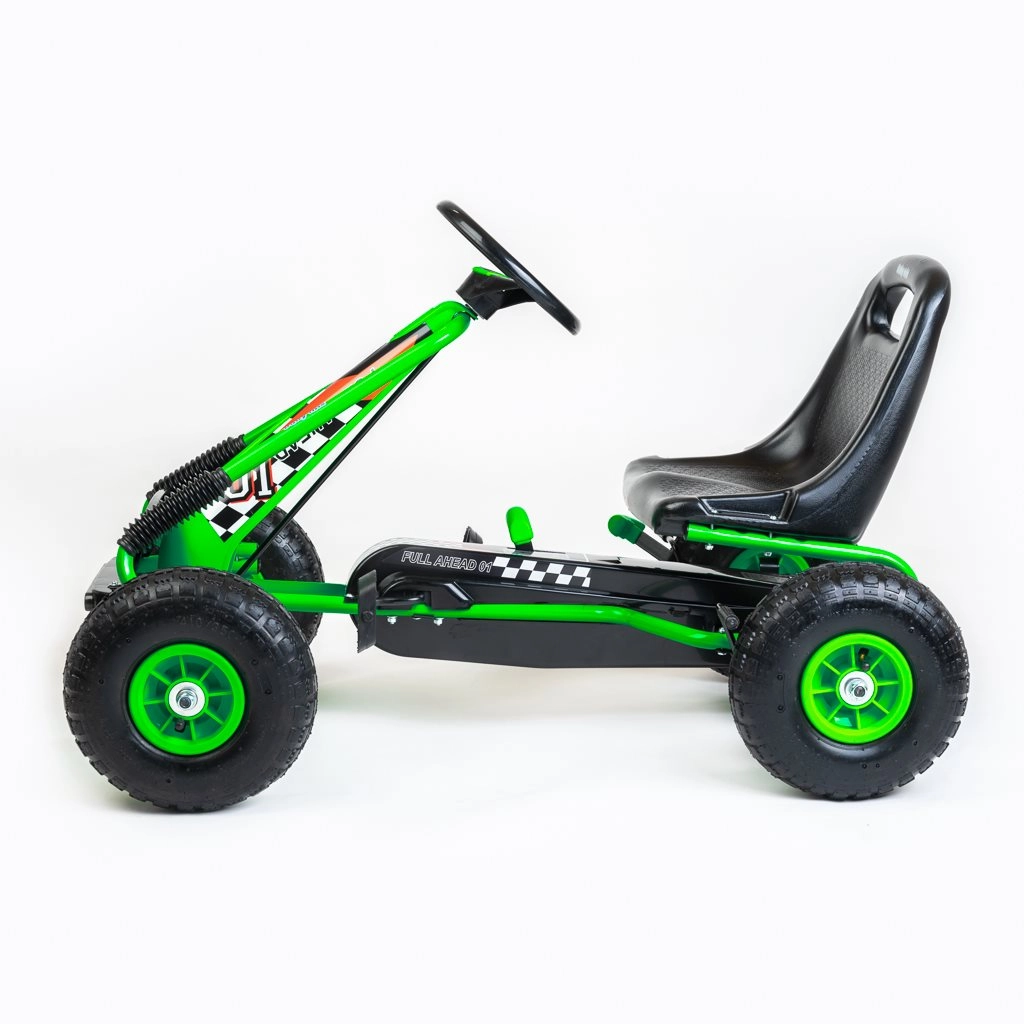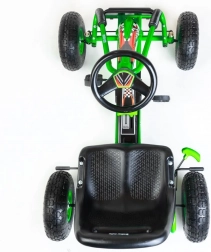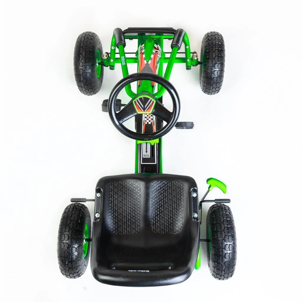 Široke pneumatske gume s ležajevima (25 × 8 cm) ublažavaju neravnine i osiguravaju bolje prianjanje. Podesivo sportsko sjedalo lako se prilagođava visini djeteta, što podupire pravilan položaj tijela i udobnost i pri duljoj vožnji. Zaštitni pokrov lanca i plastične zaštite povećavaju sigurnost i izdržljivost cjeline.