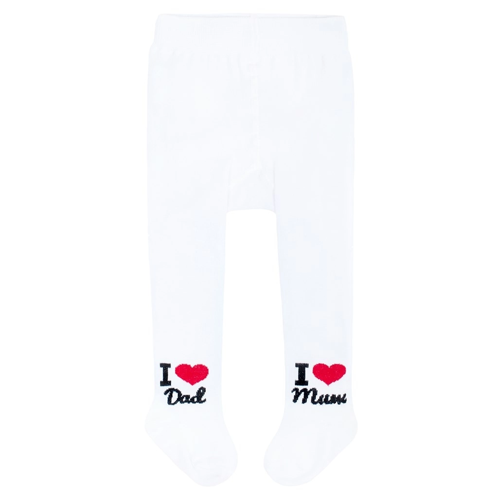 Tražite udobne i istovremeno moderne tajice za bebu? Ove bijele dječje tajice New Baby s veselim natpisima I Love Mum i I Love Dad te slikom na guzi ćete obožavati. Nježne su prema osjetljivoj dječjoj koži, odlično pristaju i zadržavaju lijep oblik.