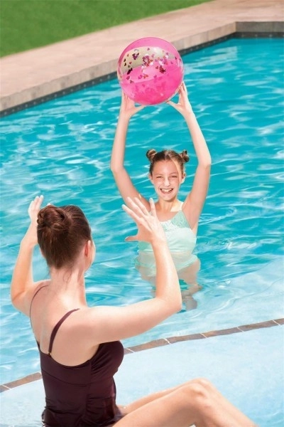 Elegantna brokatna lopta za plažu Bestway donosi puno zabave u slobodno vrijeme. Ova zlatna lopta ispunjena je svjetlucavim brokatom koji radosno kovitla i blista tijekom igre.