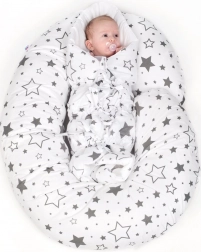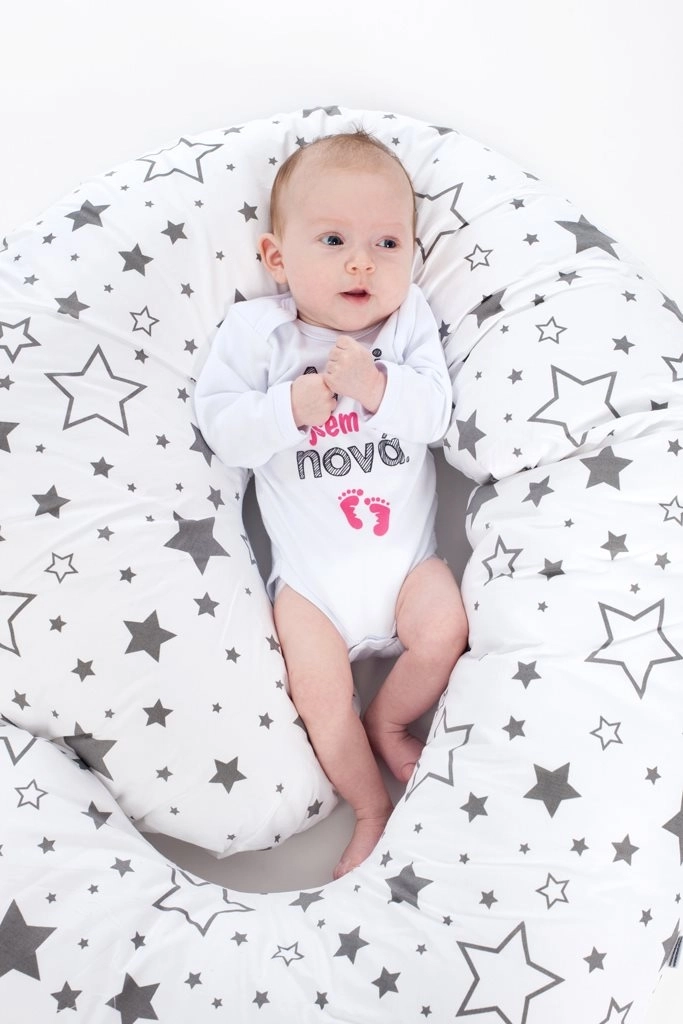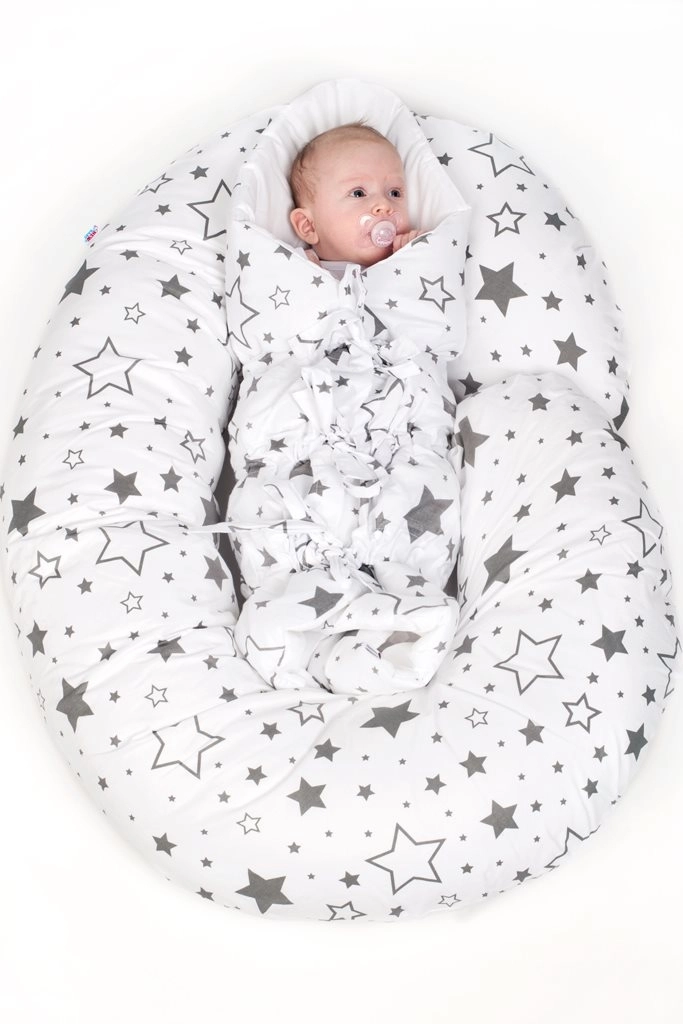 Velikodušan oblik obgrli cijelo tijelo, podupire glavu, trbuh, leđa i noge za miran san i ugodno hranjenje.