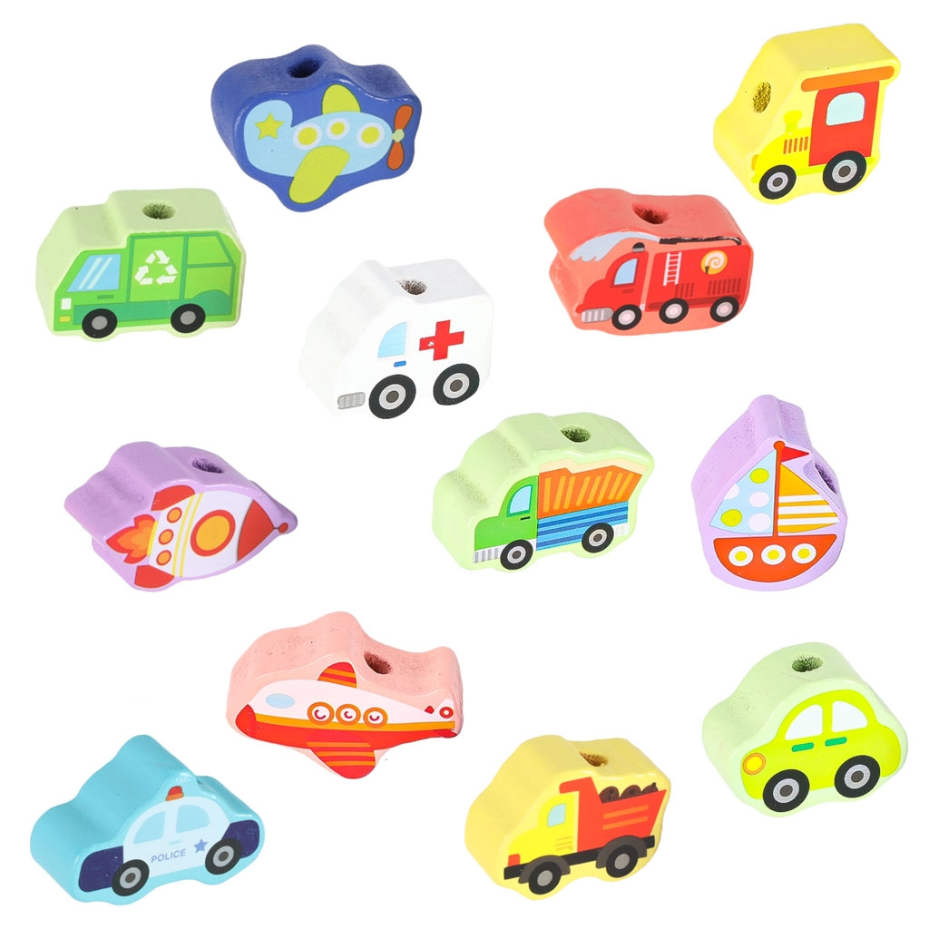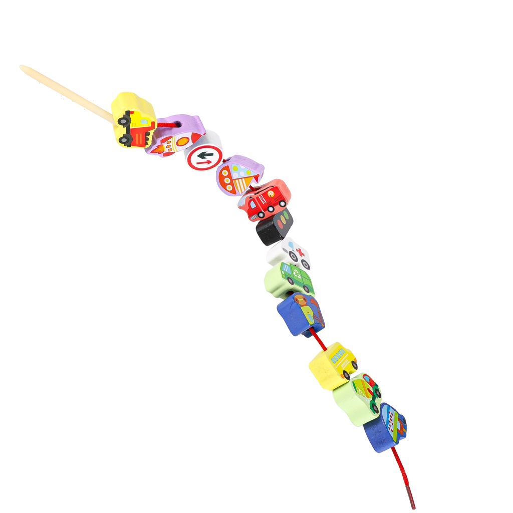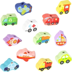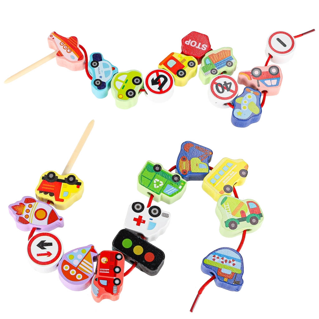 Ovaj set za nizanje s temom cestovnog prometa pomaže djeci usvojiti osnove pravila na cesti te istodobno razvija njihove vještine kroz igru. Raznovrsni oblici (automobili, autobusi, vozilo hitne pomoći, vatrogasno ili teretno vozilo, semafori, znakovi) potiču na stvaranje i bude maštu. Zahvaljujući drvenoj izradi s glatkom površinom, perle se lako drže i udobno nižu.