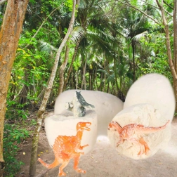 Ovaj zabavni i edukativni set prenosi djecu u svijet arheologije. Svako od 12 gipsanih jaja skriva drugačiju minifiguricu dinosaura, koju djeca pažljivo izvade pomoću priloženog dlijeta i kista. Tijekom igre vježbaju strpljenje, koncentraciju i finu motoriku te istovremeno uče o životu prapovijesnih stvorenja.