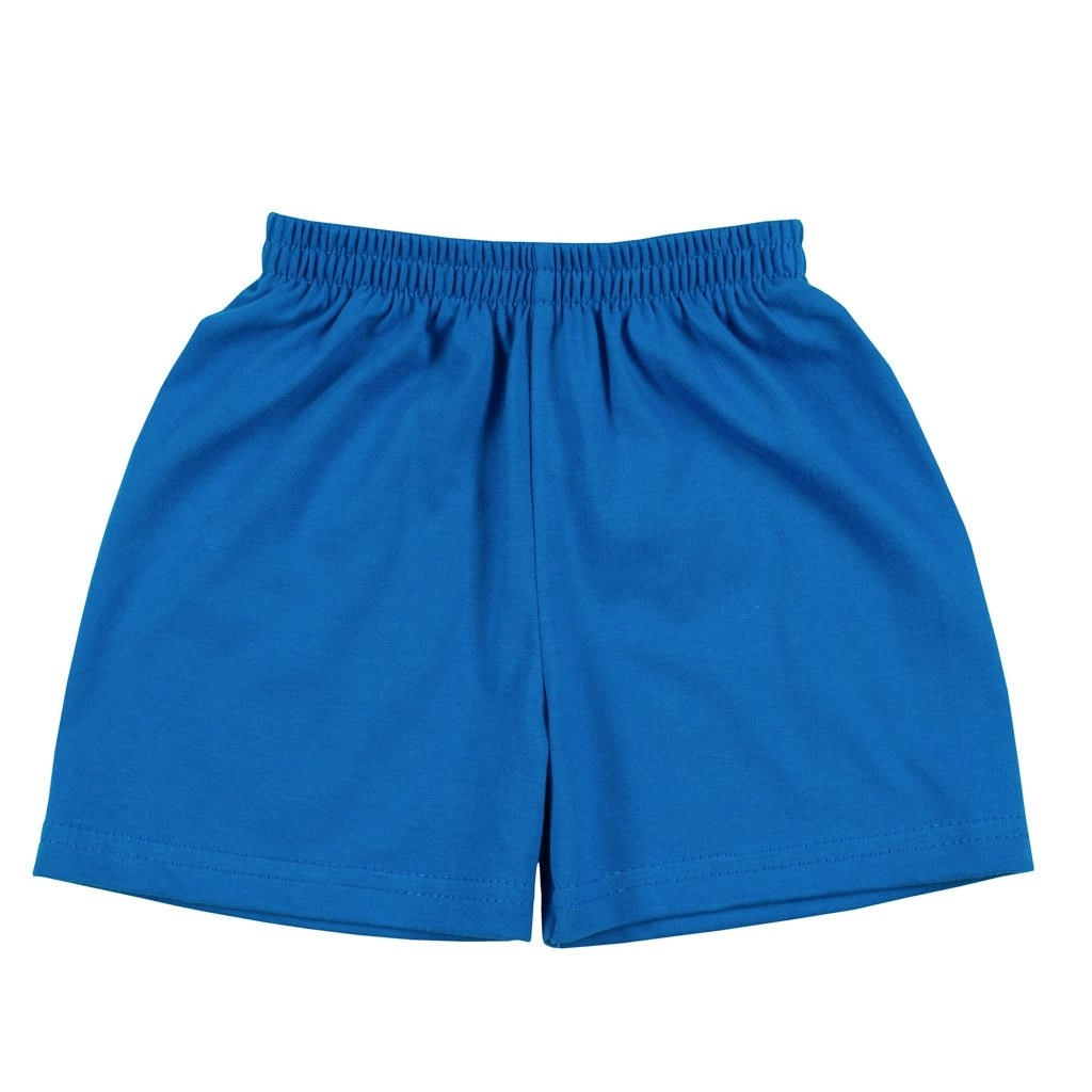 Majica kratkih rukava opremljena je kopčanjem na ramenu, što olakšava presvlačenje preko glavice. Jednostavne kratke hlače s elastičnim strukom udobno stoje na mjestu i ne stežu. Komplet je prikladan za dom, šetnje i igralište – praktičan komad za ljetnu garderobu.