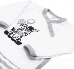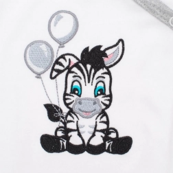 Sladak motiv zebre podstavljen je tkaninom kako vez ne bi iritirao osjetljivu bebinu kožu. Donji dio s prugastim printom daje kombinezonu razigran izgled, a zahvaljujući kroju leđa ostaju stalno pokrivena i pri aktivnom kretanju.