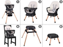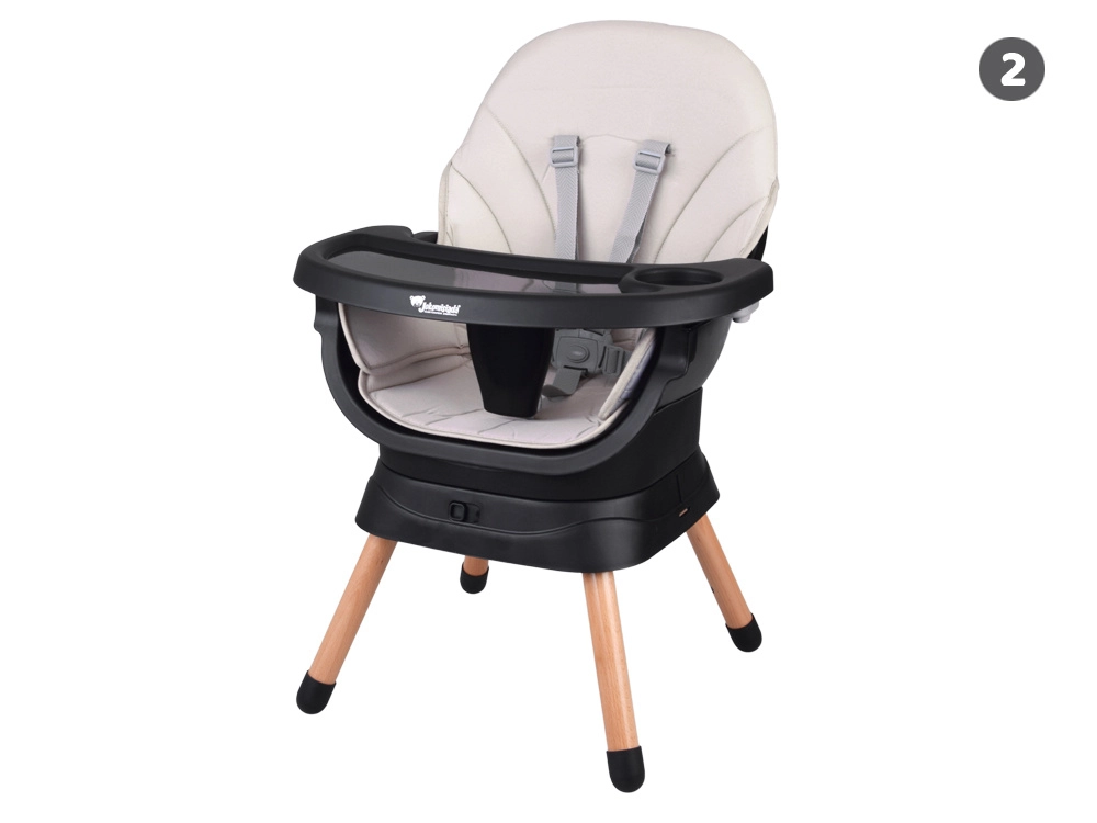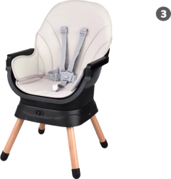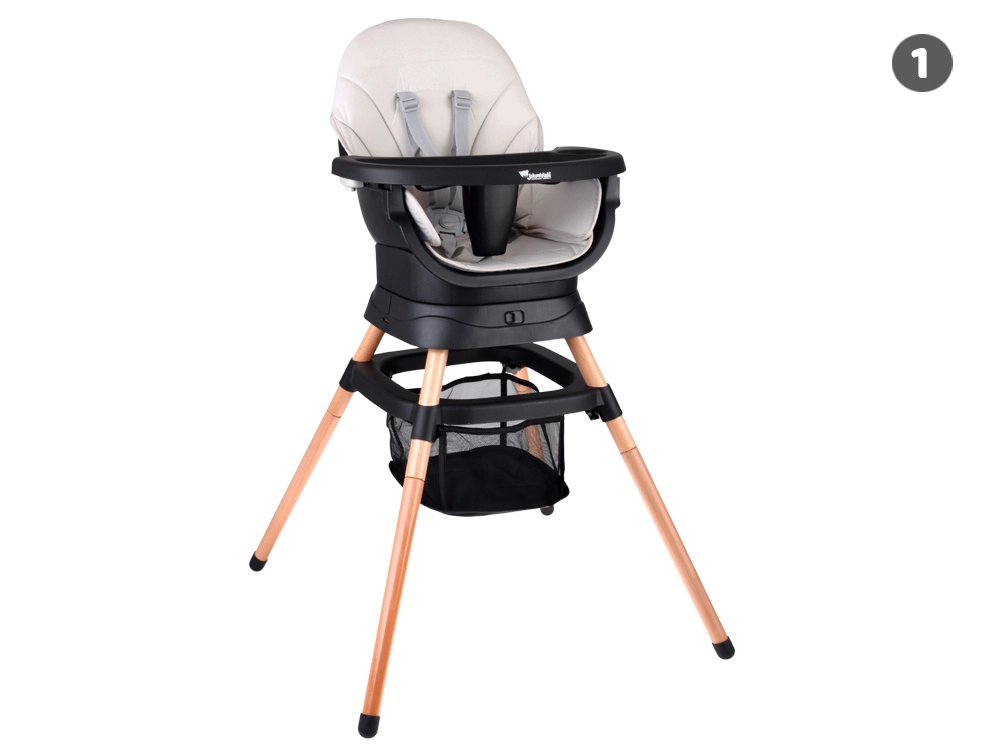 Ova moderna i ergonomska hranilica kombinira stabilnost, sigurnost i modularni dizajn. Jednostavnim klik-sustavom pretvorit ćete je prema trenutačnim potrebama djeteta – od prvih kašica do samostalnog sjedenja i igre. Minimalistički izgled uklopit će se u svaki interijer.