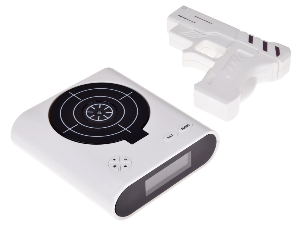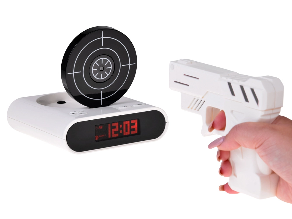 Jutro više neće biti dosadno. Kada se alarm oglasi, dovoljno je nanišaniti pištoljem u metu i pogoditi središte – budilica utihne tek nakon pogotka. Možete snimiti vlastiti ton buđenja (od šuma oceana do omiljenog techna) ili koristiti zadani alarm. Za zabavu i vježbanje preciznosti pripremljena su 2 igraća načina.