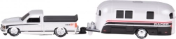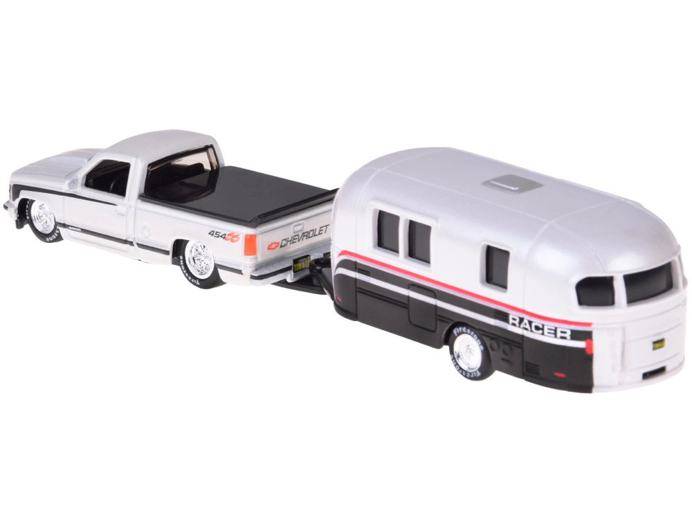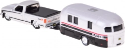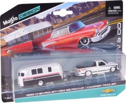 Kolekcionarski set brenda Maisto donosi legendarni 1993 CHEVROLET 454 SS u mjerilu 1:64 nadopunjen funkcionalnim karavanom. Metalna karoserija, plastično šasija i precizni detalji jamče vjernu izvedbu i izvrstan izgled u svakoj kolekciji. Set nudi odvojivu kuku za vuču i odvojivi karavan za veću raznolikost pri izlaganju i igri.