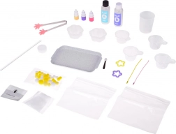 - Kalup za 2 sluzi, miješalica/štapić, pinceta, 2× ljepilo (A+B), mjerica, spužvica/aplikator, 3× bojilo, mekane dekorativne kuglice, zaštitne rukavice, 2× zvjezdica, 4× prozirna čašica, 2× ukrasna vrećica, 2× lančić za privjesak, tacna