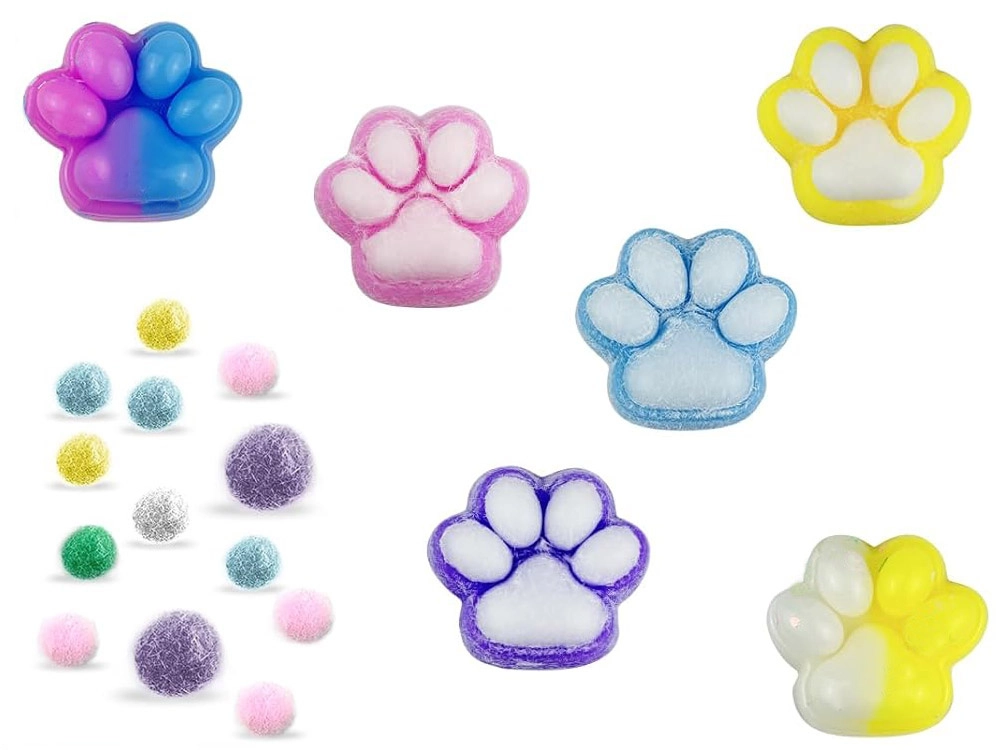 Izradite vlastite slatke privjeske u obliku 3D mačjih šapica od sluzi. Set sadrži sve potrebno za miješanje, bojanje i ukrašavanje, uključujući kalupe, bojila, svjetlucave čestice i mekane kuglice. Sjajna zabava koja potiče kreativnost, finu motoriku i pruža antistres učinak zahvaljujući stiskanju sluzi.