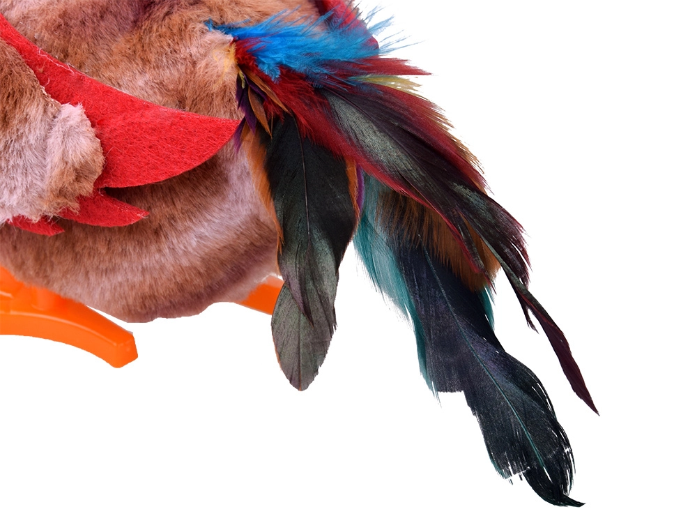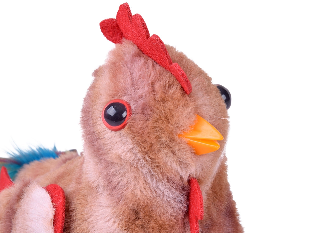 Nakon uključivanja pijetao krene sitnim korakom i veselo maše krilima – savršeno za dinamičnu i razigranu igru.