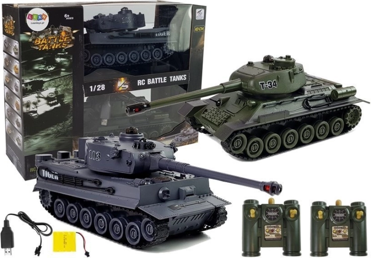 Uđite u akcijsku igru s dvojcem detaljno izrađenih RC tenkova T‑34 i TIGER 103. Svaki tenk ima pokretnu kupolu s topom i može se upravljati u svim smjerovima. Zahvaljujući sustavu infracrvene borbe uživat ćete u poštenim dvobojima: nakon pogotka oduzimaju se životi i mijenja se ponašanje tenka sve do poraza.