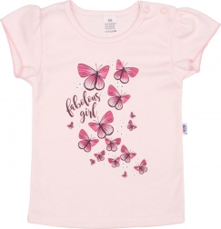 Kompletić New Baby Butterflies idealan je izbor za svakodnevno nošenje i svečanije trenutke. Majicu s kratkim rukavom krasi nježan motiv leptirića i praktično kopčanje na ramenu, koje olakšava odijevanje bebe. Melirana suknjica s elegantnim volanom daje outfitu razigrani dojam.