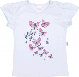 Komplet New Baby Butterflies idealan je izbor za svakodnevno nošenje i svečanije trenutke. Majicu krasi nježan motiv leptirića i kratki naborani rukavi koji outfitu daju djevojački šarm. Suknjica u tamnoplavoj boji ima lijep volan koji cijelom looku dodaje razigranost i lakoću.