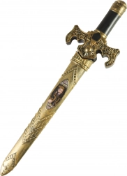 Viteški mač sa zlatnom futrolom odličan je izbor za karneval, maskenbale i svakodnevne igre mašte. Zahvaljujući realističnim zvučnim efektima svakom dvoboju daje pravi naboj te potiče dječju maštu i ulogu hrabrog čuvara kraljevstva.