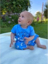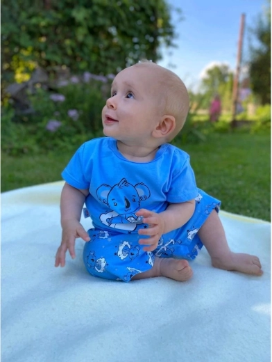 Ovaj dvodijelni set idealan je za tople dane i miran san. Majica s kopčanjem na ramenu na drukere omogućuje brzo i praktično oblačenje, dok prozračni pamuk osigurava maksimalnu udobnost tijekom cijelog dana. Kratke hlače imaju mekan, rastezljiv pojas koji ne steže i prilagođava se bebinom trbuščiću.