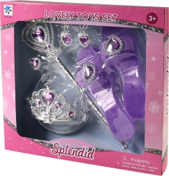 Ovaj čarobni set za male princeze razveselit će sve ljubiteljice kostimiranja. Zahvaljujući elegantnoj srebrno‑ljubičastoj kombinaciji i srcolikim kamenčićima, cijeli set djeluje svečano i očaravajuće. Djeca mogu razvijati maštu, kreativnost i igru uloga u svakoj zabavnoj prilici – od igre kod kuće do dječjih zabava.