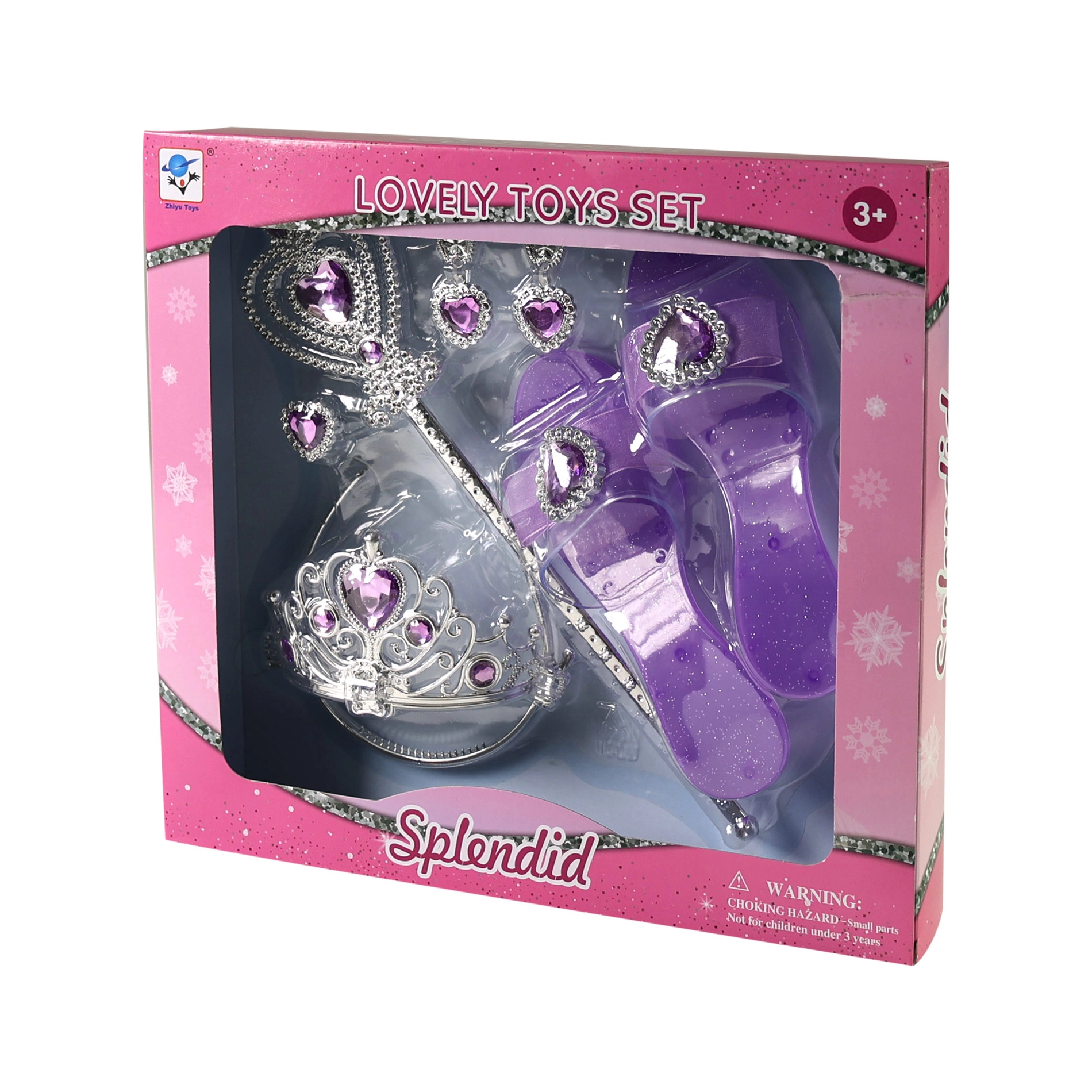 Set uključuje krunu, cipelice, štapić, naušnice i prsten – sve koloristički usklađeno za savršeno dotjeran izgled.