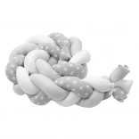 Zaštitna ograda u obliku pletenog pletera iz kolekcije NEW BABY nježno obavija unutarnji rub krevetića i ublažava udarce. Tri mekana pramena ručno su ispletena od pamučne navlake i ispunjena antialergijskim vlaknom za maksimalnu sigurnost i udobnost bebe.