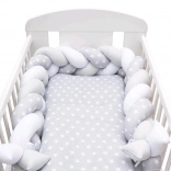 Mekani i praktični pleteni pleter NEW BABY moderna je alternativa tradicionalnim ogradama za dječje krevetiće. Pruža mekanu zaštitu od rešetki, izolaciju od hladnog zida te je ujedno stilna dekoracija dječje sobe. Izrađen od kvalitetnog 100% pamuka i antialergijskog vlakna, prilagođava se svakom krevetiću i lako se pričvršćuje pomoću priloženih vrpci.