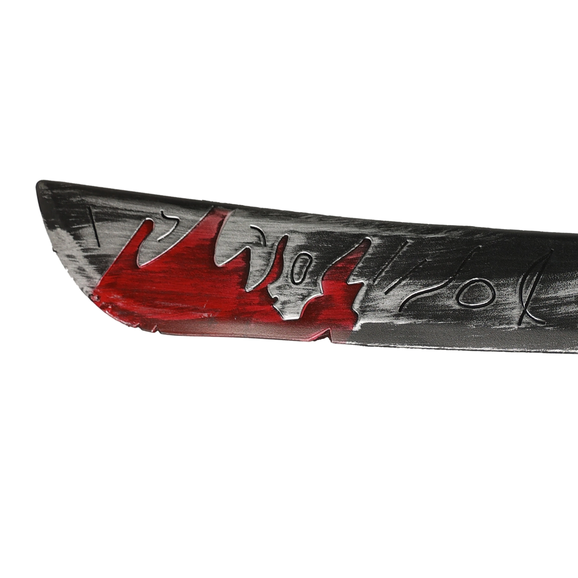 - Realističan izgled – siva „metalna“ oštrica s krvavim efektom i dekorativnim gravurama.