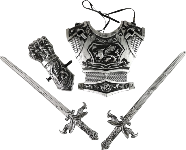 Pretvorite male avanturiste u hrabre branitelje kraljevstva s ovom kompletnom viteškom opremom. Set nudi srebrne mačeve i dodatke za maštovitu igru, potiče kreativnost i aktivnu zabavu u kući i na otvorenom.