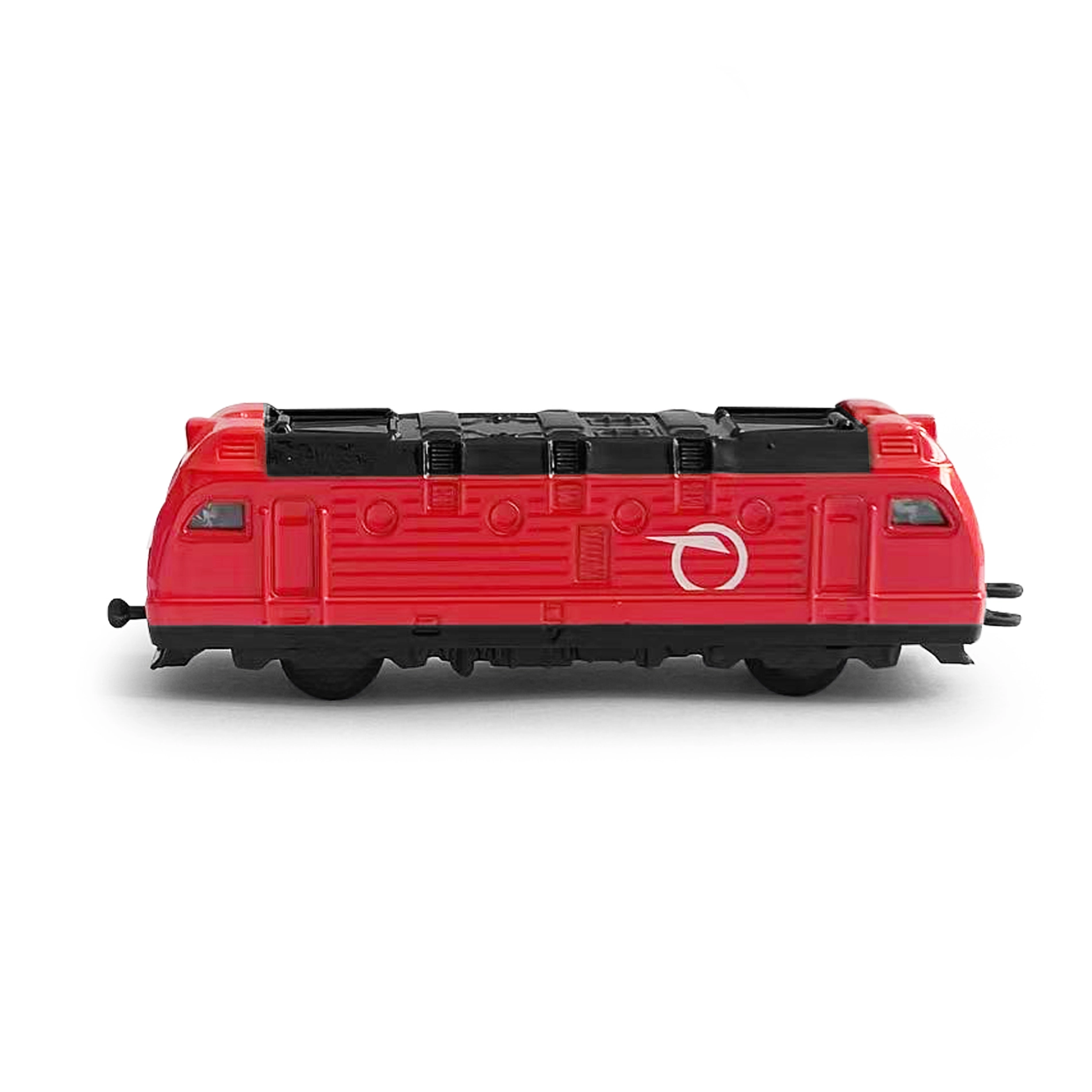 Ova realistično izrađena metalna lokomotiva duljine približno 9 cm ističe se detaljnim dizajnom, kontrastnim elementima i tiskom inspiriranim Železničnom spoločnosťom Slovensko. Zahvaljujući slobodnom hodu vožnja je glatka i tiha na ravnim površinama i na igrališnim tračnicama razmaka 1,2 cm.